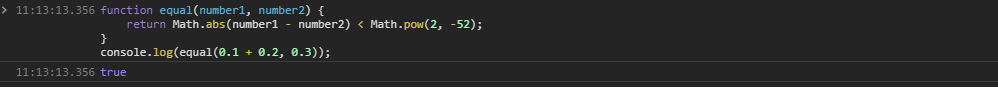 return Math.abs(number1 - number2) < Math.pow(2, -52);