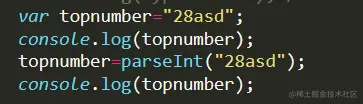 原本打印出来是字符串“28asd”,经过parseInt()函数,转换为整型“28”
