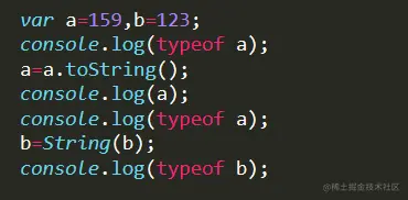 变量a本来是number类型,通过转换字符串之后,显示仍为159但是类型变成string型。