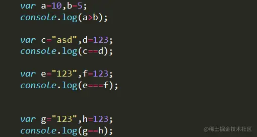 - ===: 相等,比较值的同时比较数据类型是否相等
