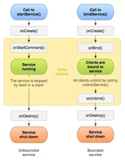 IntentService 用来开启一个后台服务处理完以后并且可以马上停止服务。比如当我们在广播中的onRecive 方法中接收到广播马上就要去异步请求一个网络数据。(手机发出广播,天气应用接收到开机广播,在onReceive 方法里去获取天气数据)。首先我们Androidmanifest.xml通过静态相关广播,其他进程发出相关全局广播。当接收到广播时候,如果此时正在执行回调到onReceive 方法,那么此时的进程优先级可以看作是前台进程,不容易被系统回收。当执行完onReceive 方法以后,当前进程很可能马上被回收,而这时候马上去开启一个子线程去请求网络是不保险的。针对以上可能出现的缺陷问题,我们会交给Service 在后台处理,同时配合Handler 去更新UI。所以针对该问题,Google 为我们封装了IntentService 用来处理类似问题。 我们知道当开启一个Service 的方式有StartService 和BindService 两种方式。简单的说一下StartService 开启后Service 的生命周期。多次开启StartService 之后onCreate 只会调用一次,但是onStartCommand()方法会调用很多次,但