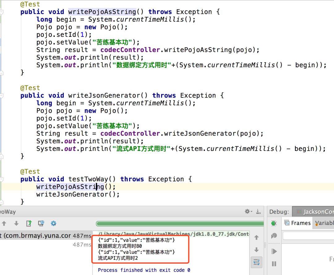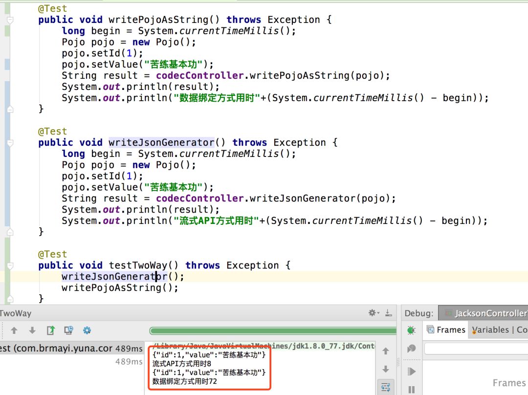 因为初始化时要先实例化ObjectMapper,有时间消耗。为了不让流式API转这个便宜。将两个要测试的方法写到一个类里,初始化时先实例化ObjectMapper。并且先运行流式API。