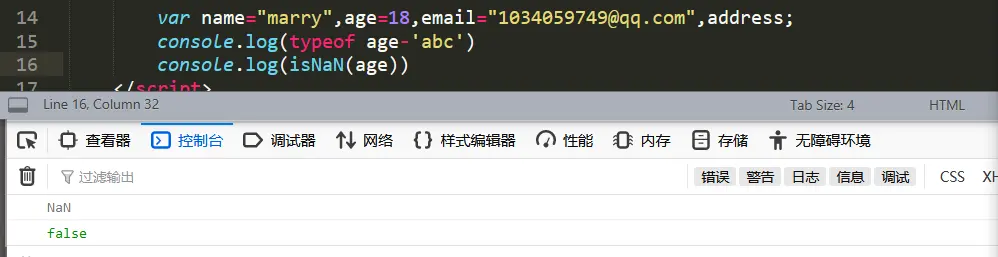 若转换内容为字符串的话,则转换后的数据类型为NaN
