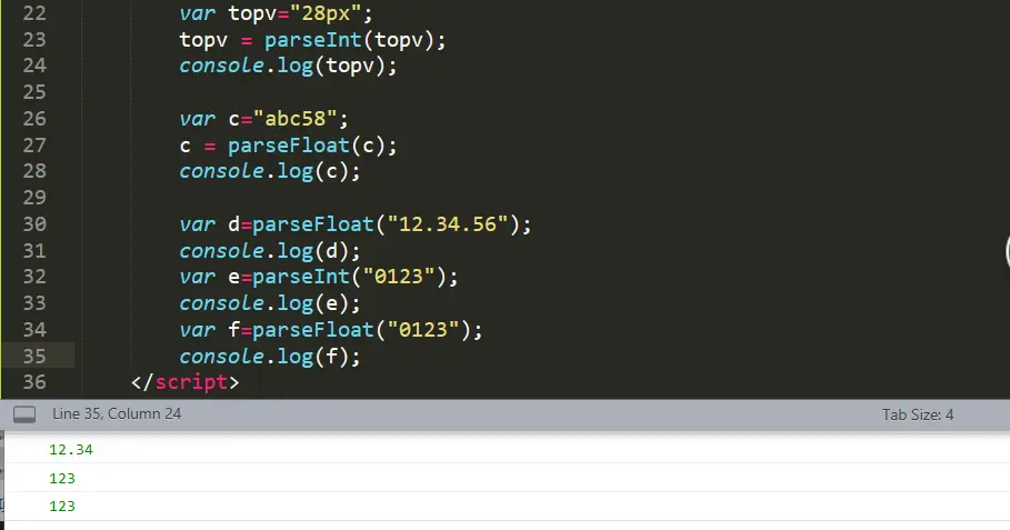 - parseInt()和parseFloat()则专门用于把字符串转换成数值