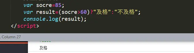 如果第一个操作数隐式类型转换后为true,则返回最后一个操作数
