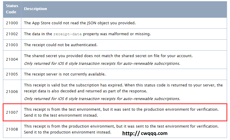 当 status = 21007 时,把请求地址换成沙盒测试地址,再次请求验单。