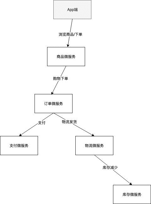 而随着公司的逐步发展,业务请求量与日剧增,为了提高整个系统的吞吐量及可用性,我们采用了微服务架构的设计,将原先的系统拆分成了商品、订单、支付、物流、库存等多个微服务,而这些服务之间通过网络进行通信(以Spring Cloud来说就是通过我们前面说到的FeignClient进行服务发现后,以HTTP的方式进行网络调用),形成了一次购物请求,会经历app端调用商品微服务进行浏览,选中商品后由商品中心调用订单中心进行下单,然后订单中心调用支付系统进行付款,付款成功后,订单中心再调用物流中心进行发货,与此同时,物流中心调用库存系统进行库存减少的漫长调用链路。