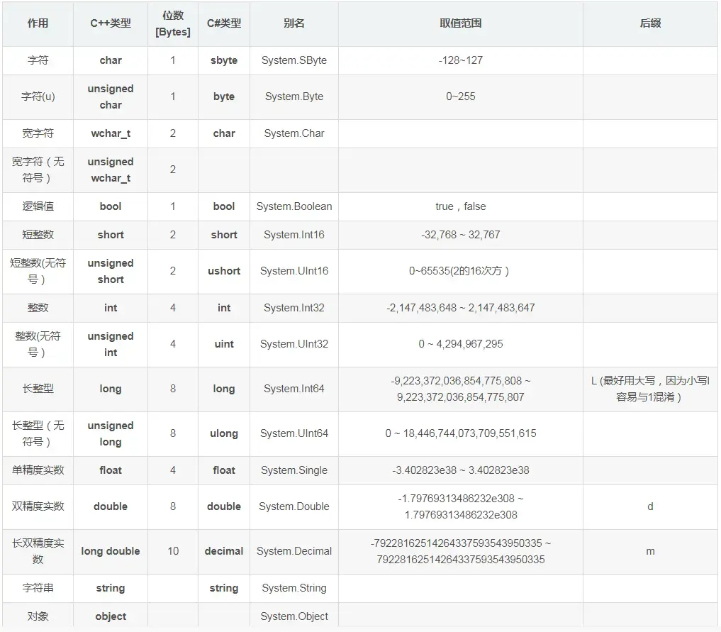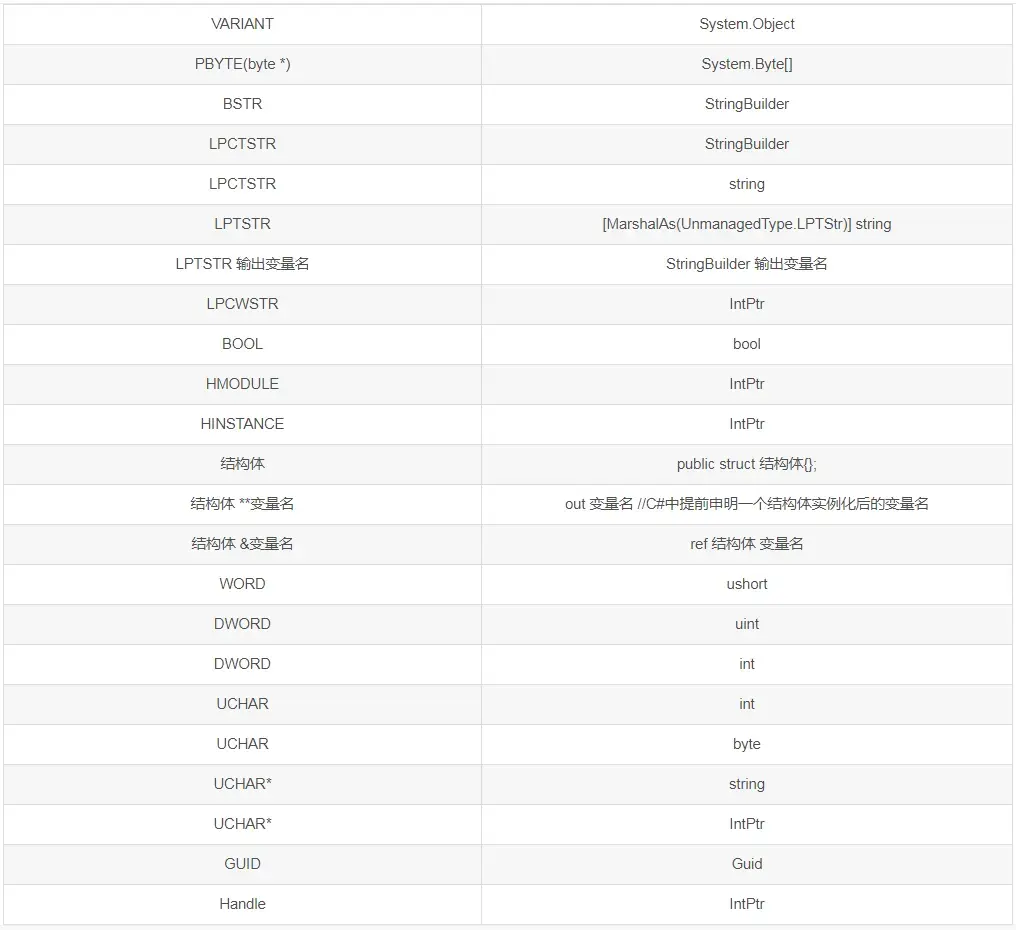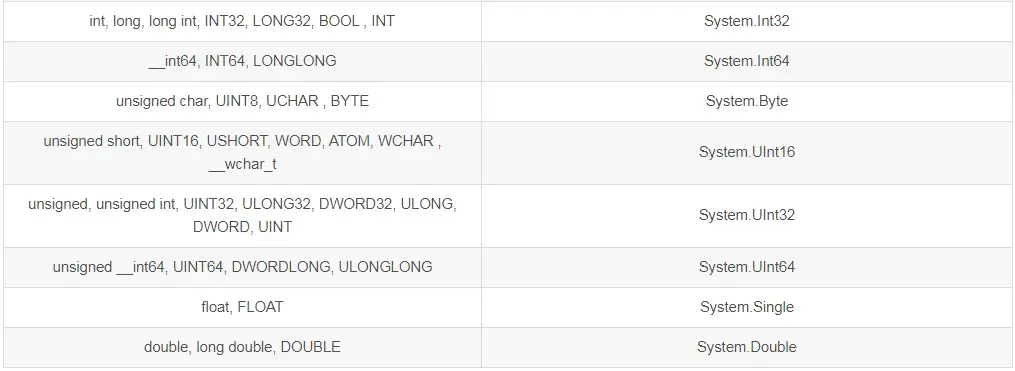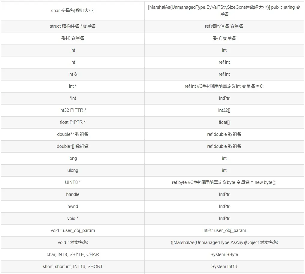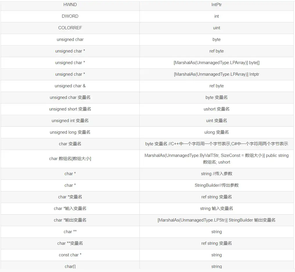 C#调用C++的DLL搜集整理的所有数据类型转换方式,可能会有重复或者多种方案。