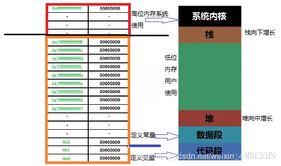 生长方向:对于堆来讲,生长方向是向上的,也就是向着内存地址增加的方向;对于栈来讲,它的生长方向是向下的,是向着内存地址减小的方向增长。