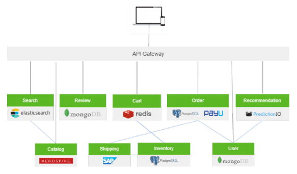 来自客户端的所有请求都首先通过API网关,然后网关再将请求转到适当的微服务。