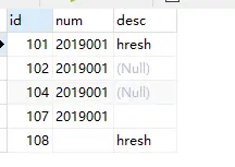 INSERT INTO "spring"."student" ("id", "num", "desc") VALUES (101, '2019001', 'hresh');--插入成功