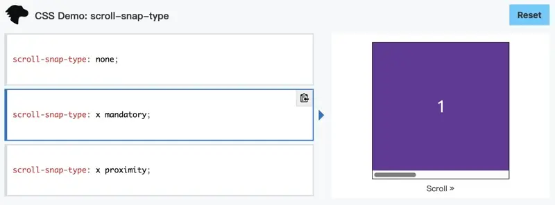 以第一个 Scroll Snap Horizontal 横向滚动 为例: