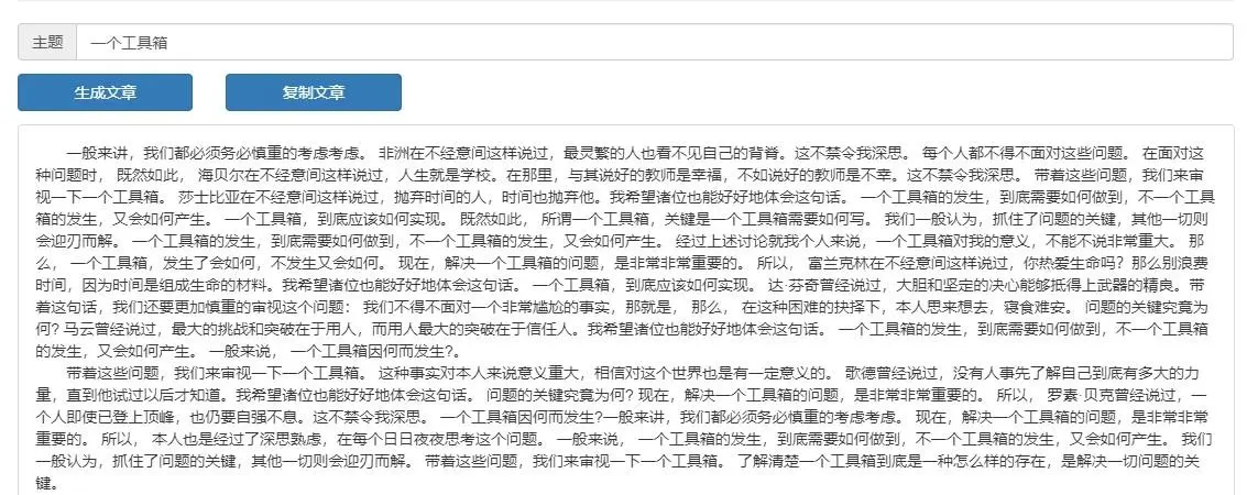本工具生成的文章真的狗屁不通只,能拿来搞笑,请不要用于正规用途!