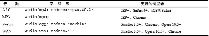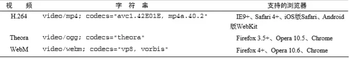 用媒体元素的canPlayType()方法检测 该方法接受一种格式/编解码器字符串,返回probably,maybe或空字符串,例子如下: