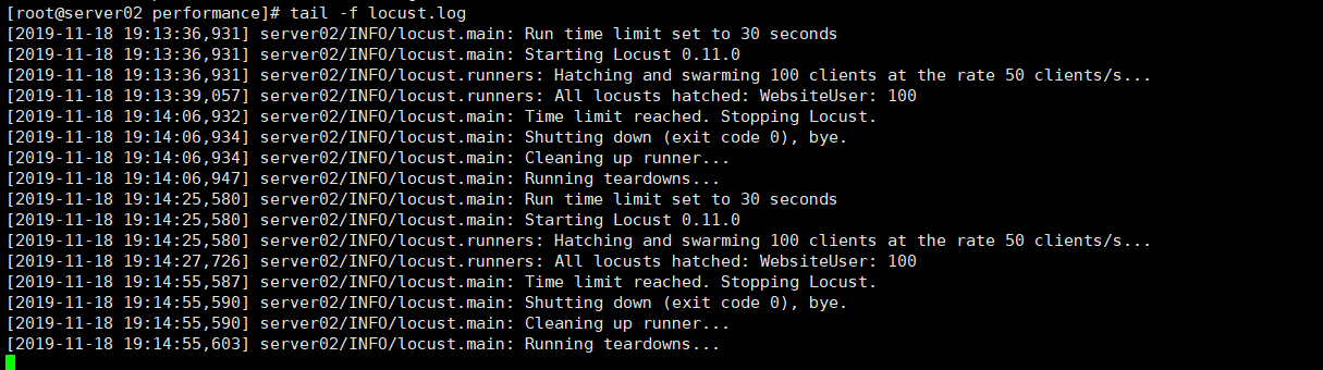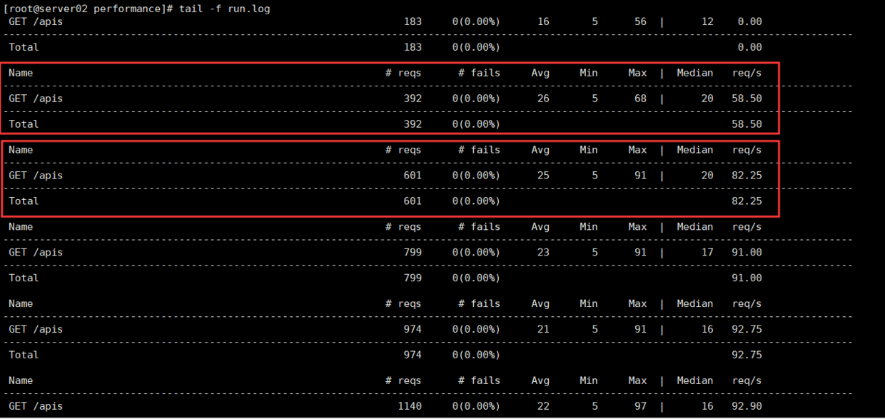 这样做的好处就是不会对locust压测造成较大的性能损耗,因为大概是5秒打印一次执行日志,相信这个损耗是比较低的了。