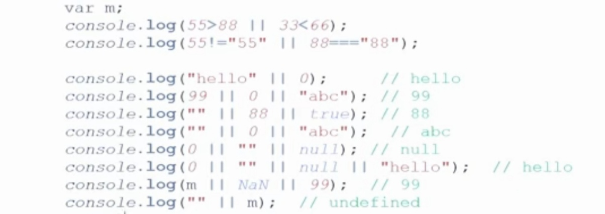 2、如果第一个操作数隐式类型转换后为false,则返回第二个操作数。