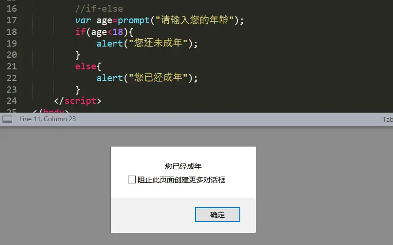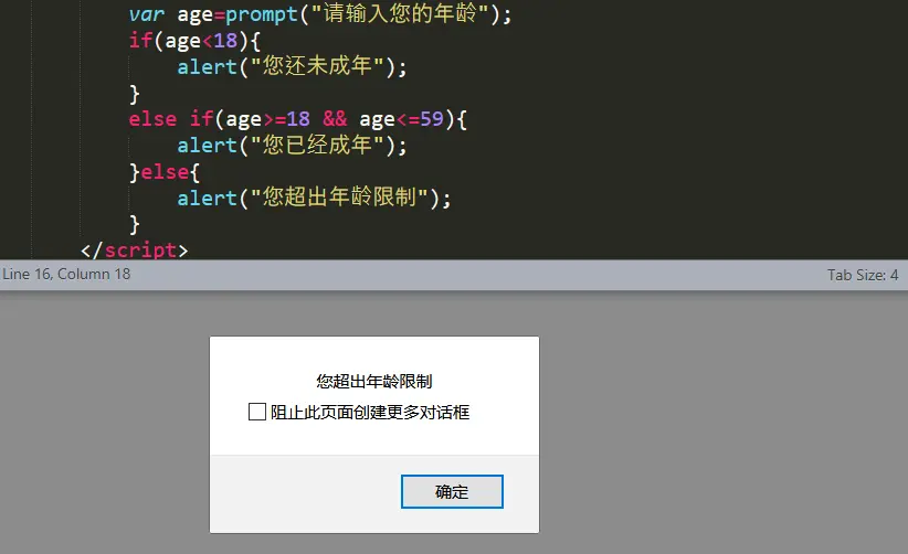 功能:弹出警告对话框,括号内填写警告对话框的内容