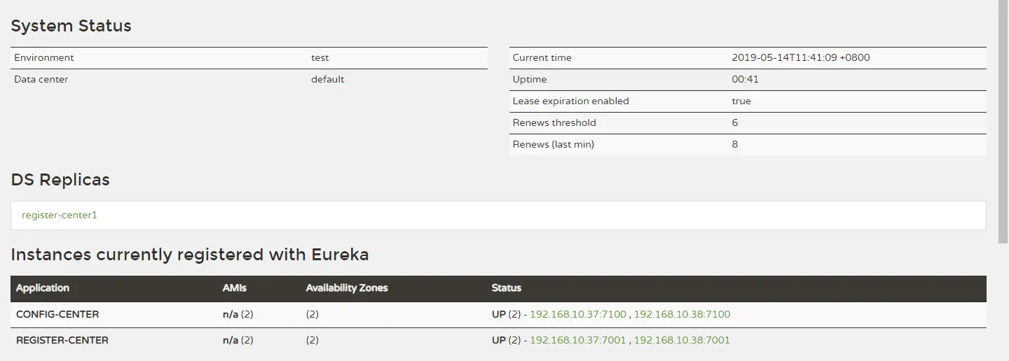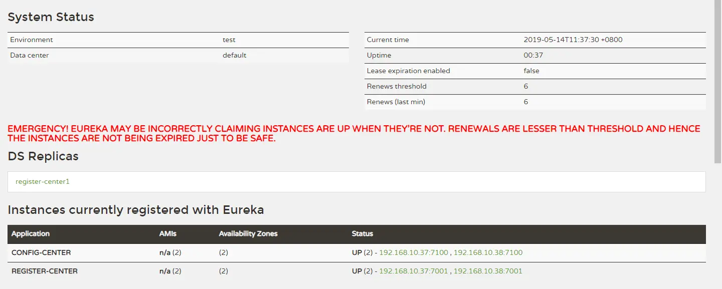 | Renews threshold | Eureka Server 期望每分钟收到客户端实例的总心跳数 |