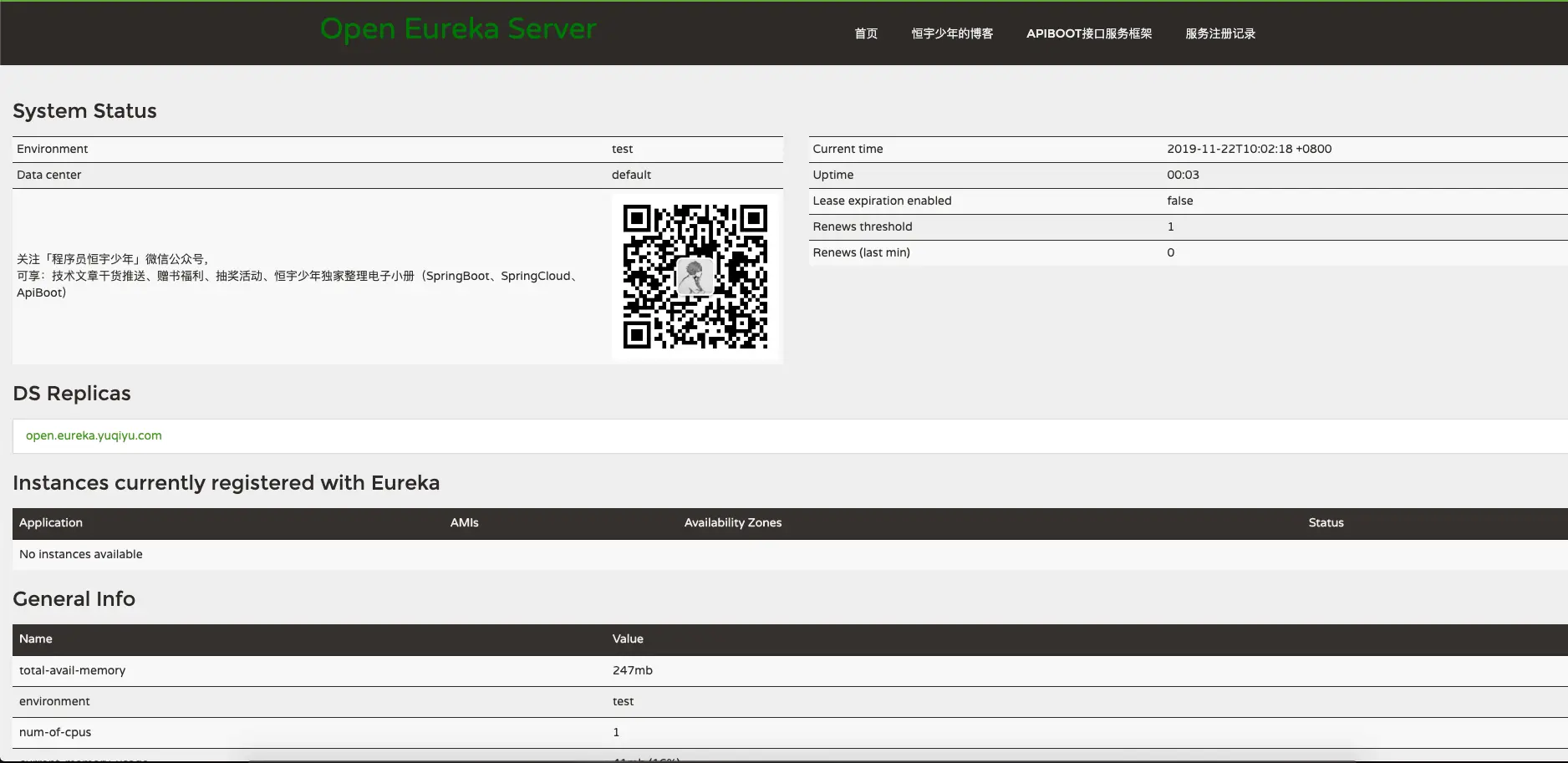 Erueka Server 注册地址:open.eureka.yuqiyu.com/eureka/