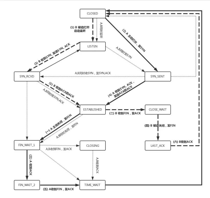 TCP协议 --(上) Gracemark 2019-11-22 140 阅读1分钟 一、TCP协议 包头格式 通过对 TCP 头的解析,我们知道要掌握 TCP 协议,重点应该关注以下几个问题: 顺序问题 ,稳重不乱; 丢包问题,承诺靠谱; 连接维护,有始有终; 流量控制,把握分寸; 拥塞控制,知进知退。 TCP三次握手 TCP四次挥手 TCP状态机 参考链接: 跟着动画来学习TCP三次握手和四次挥手