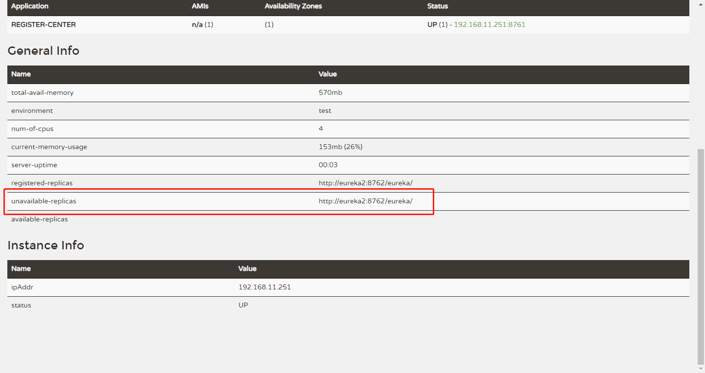 如上图所示,注册实例出现在 unavailable-replicas 里面。