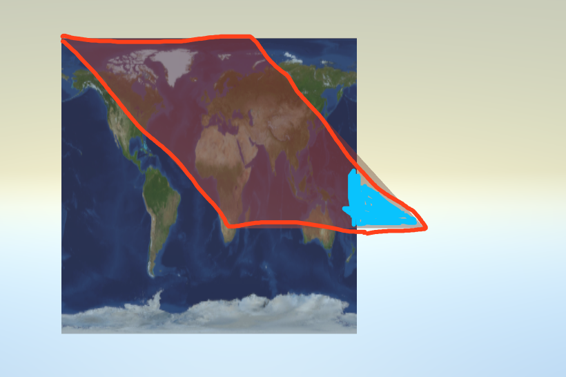 contentsTransform时,本质就是在操作画布,比如将画布先绕 y 轴旋转 50 度,再绕 x 轴旋转 50 度(等同于欧拉角(x:50, y:50, z:0)),最后在空间中的相对位置如图: