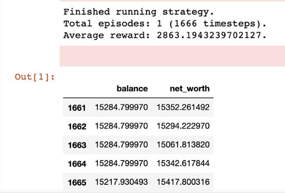 完成后,strategy.run返回代理性能的Pandas数据帧,包括代理在每个时间步的净值和余额。