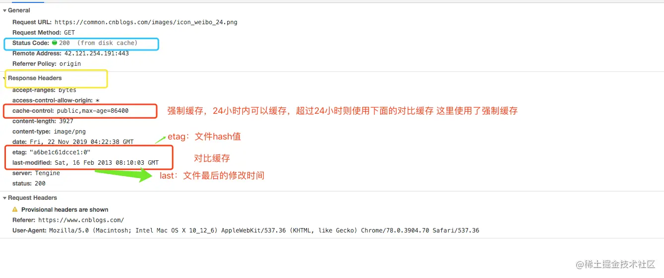 disk缓存由HTTP请求字段控制: 通过请求头,响应头的字段指定缓存规则