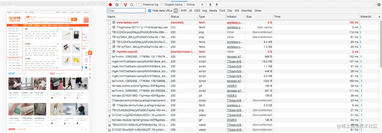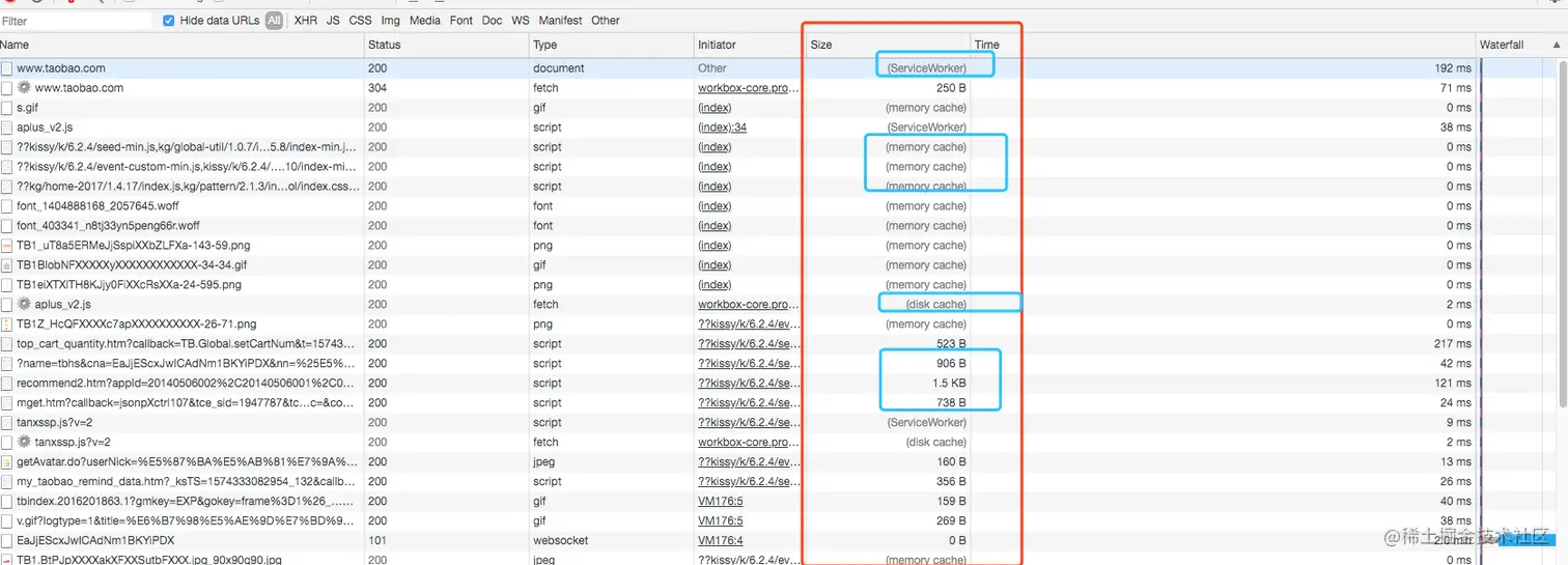 经过ServiceWorker的fetch()获取的资源,即便他没有命中SW缓存,甚至走了网络请求,也会被标记成from SW