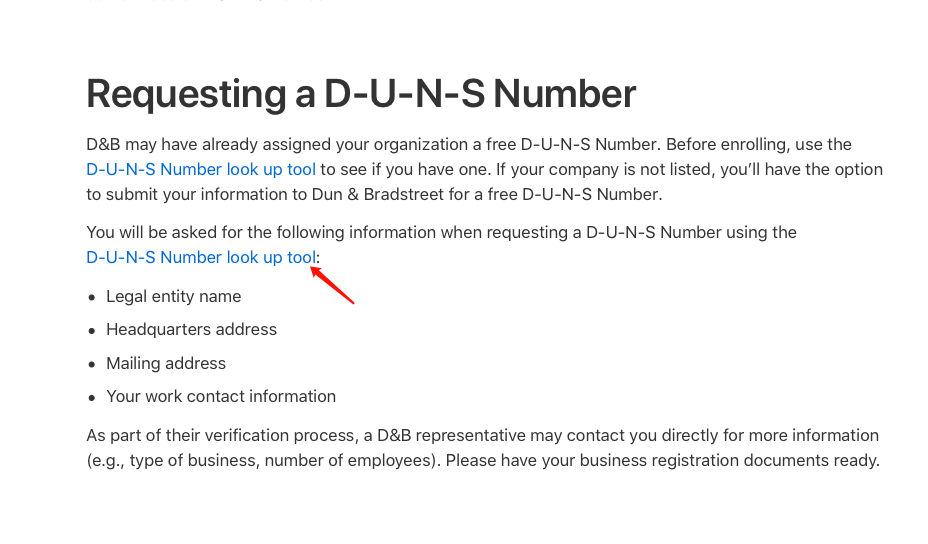 - 点击D-U-N-S Number look up tool。