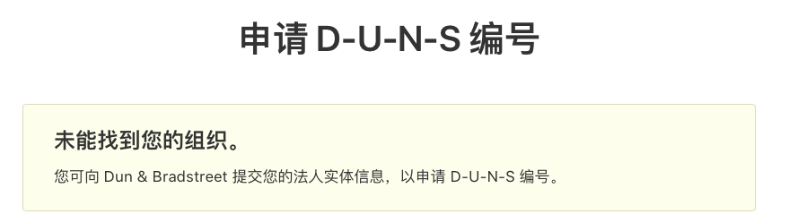 进入到查询结果页,我们的没有申请过邓白氏码,显示如下,还会显示上个页面填写的所有信息(未截图),确认所有信息无误后,在页面的最下方勾选复选框,点击提交即可。