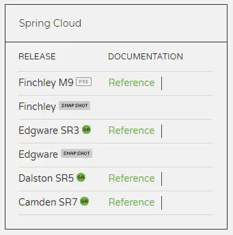 由上可知,Spring Cloud 的第一个版本 "Angel" 就不觉得奇怪了,接着 "Brixton" 就是第二个版本。当一个项目到达发布临界点或者解决了一个严重的BUG后就会发布一个 "service Release" 版本, 简称 SR(X)版本,x 代表一个递增数字。