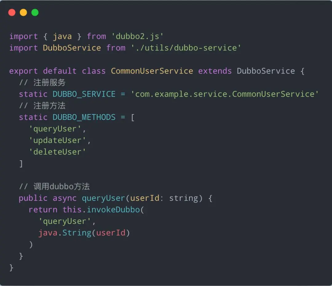 我们使用了社区提供的 dubbo2.js 进行 Dubbo 服务的调用,并且做了一些封装来优化发开体验。