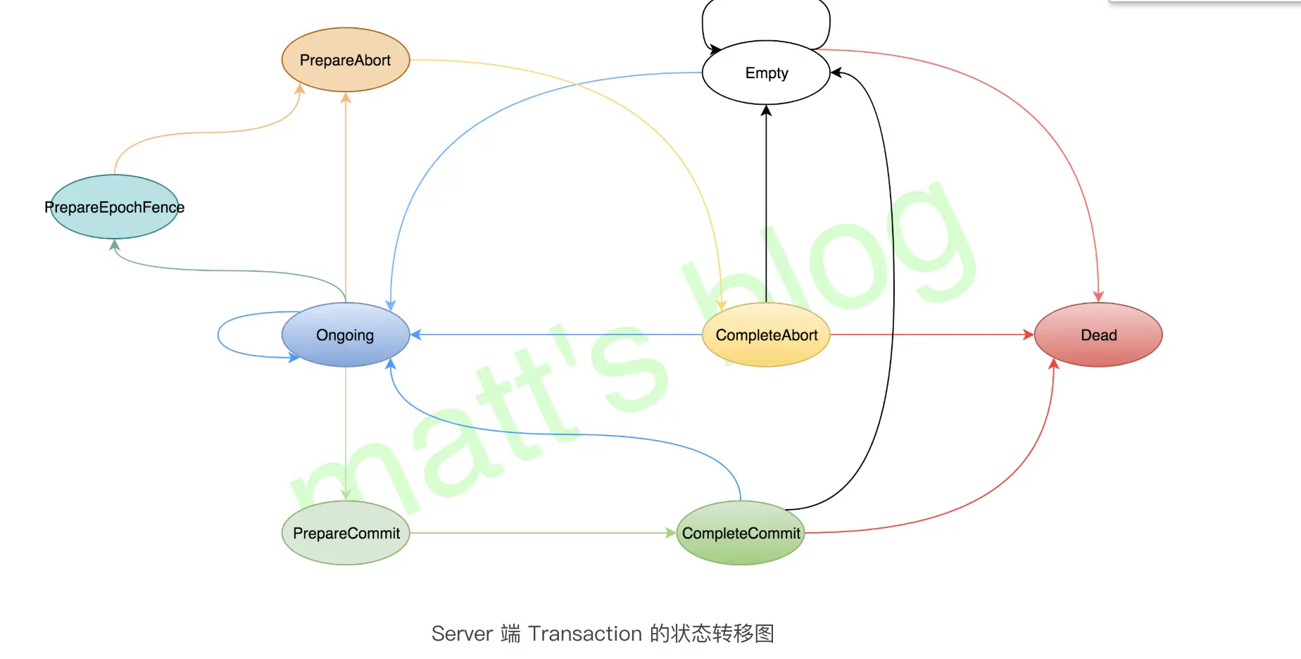 **正常情况下,对于一个事务而言,其状态状态流程应该是 Empty –> Ongoing –> PrepareCommit –> CompleteCommit –> Empty 或者是 Empty –> Ongoing –> PrepareAbort –> CompleteAbort –> Empty。