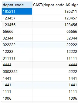 select depot_code, CAST(depot_code AS signed) from scm_depot ORDER BY CAST(depot_code AS signed) DESC;