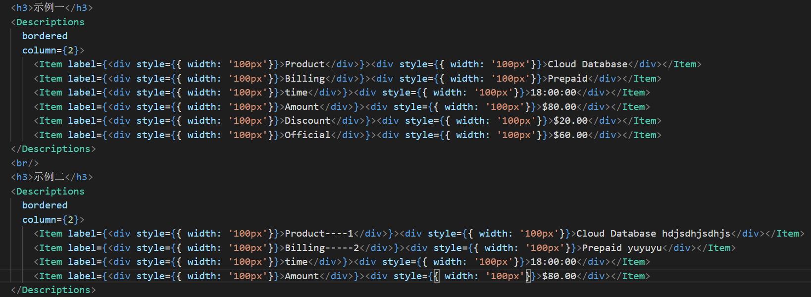 公司需要完成一个需求,用到了几个不同的descriptions做数据展示,但是发现不同的descriptions它的列宽度会根据内容长度而变得不同(如下图),需要你手动设置去统一对齐。首先大家想到的都是修改antd组件的样式,但找到对应元素类名修改之后发现依然无法对齐。最终调试找到了如下的解决方法。