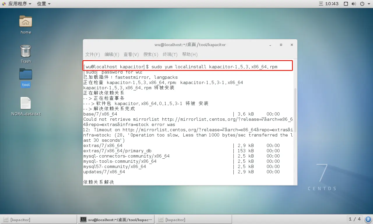 sudo yum localinstall kapacitor-1.5.3.x86_64.rpm