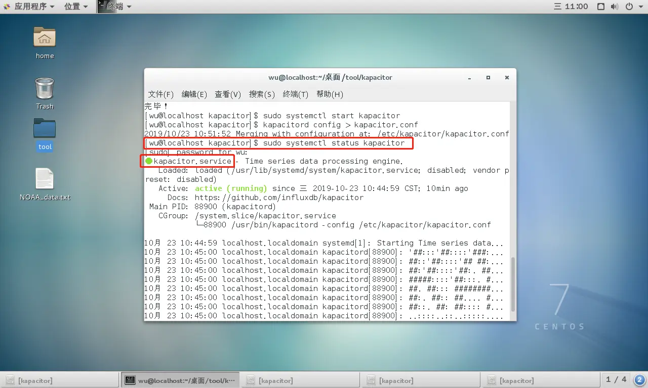 查看kapacitor服务状态: