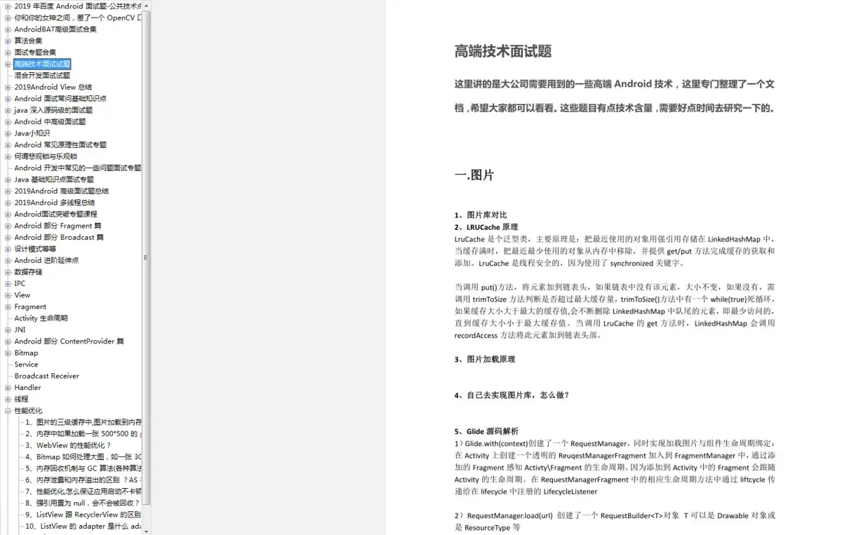 (含有从基础到进阶。含有BATJ.字节跳动面试专题,算法专题,高端技术专题,混合开发专题,java面试专题,Android,Java小知识,到性能优化.线程.View.OpenCV.NDK等应有尽有。还有辅之相关的视频+学习笔记)