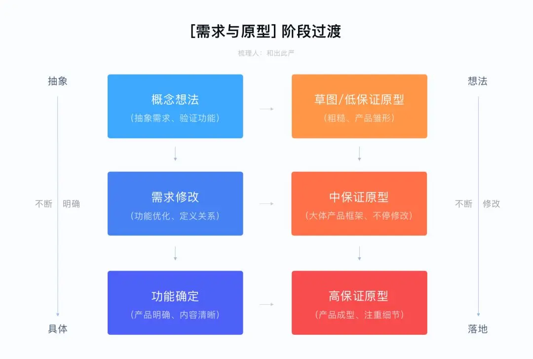 下面是我对‘原型’的理解,所绘制用于表示不同阶段下的需求特征。