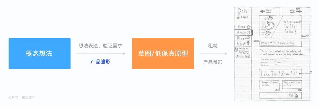 产品雏形 - 将我们的想法、概念需求可视化出来,并加以讨论验证。因此,最合适的方式就是用