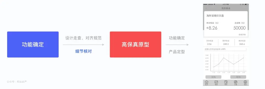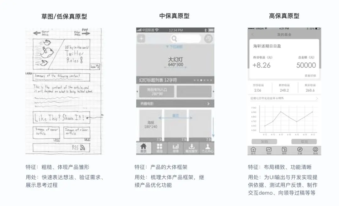 所以对产品经理/交互设计师来说,只需产出一个大体上看得明白、能理清产品功能的‘中保真原型’即可。方便即时修改,向产品定型/高保真原型过渡。