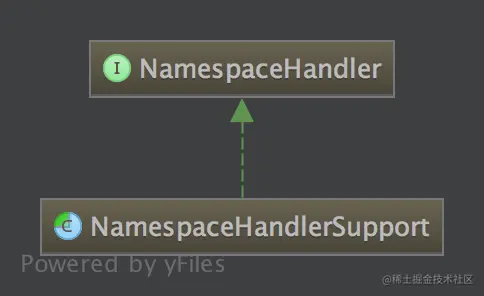 - 根据spring.handlers的内容和当前的namespace, 并返回了自定义的NamespaceHandler的实现。