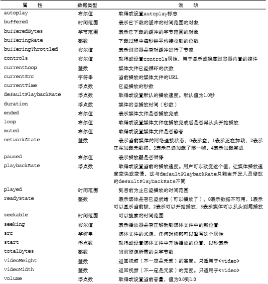 在标签中包含 src 属性,指向要加载的媒体文件。还可以设置 width 和 height 属性以指定视频播放器的大小,而为 poster 属性指定图像的 URI可以在加载视频内容期间 显示一幅图像。另外,如果标签中有 controls 属性,则意味着浏览器应该显示 UI控件,以便用户直 接操作媒体。位于开始和结束标签之间的任何内容都将作为后备内容,在浏览器不支持这两个媒体元素 的情况下显示