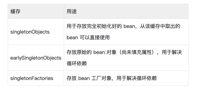 IOC容器去加载bean的时候,按照顺序去加载,会优先加载beanA然后会注入beanB,发现beanB没被实例,接下来会加载beanB然后注入beanA,这时候发现beanA没被实例。导致整个过程形成死循环,程序会一直加载,最终导致内存溢出。spring解决方案,采用三级缓存的实现方案,在容器加载beanB的时候,发现beanB依赖beanA,容器会在加载beanA放入到早期缓存,并把这个早期beanA注入到beanB中,beanB完成实例。beanA也就可以完成实例化。