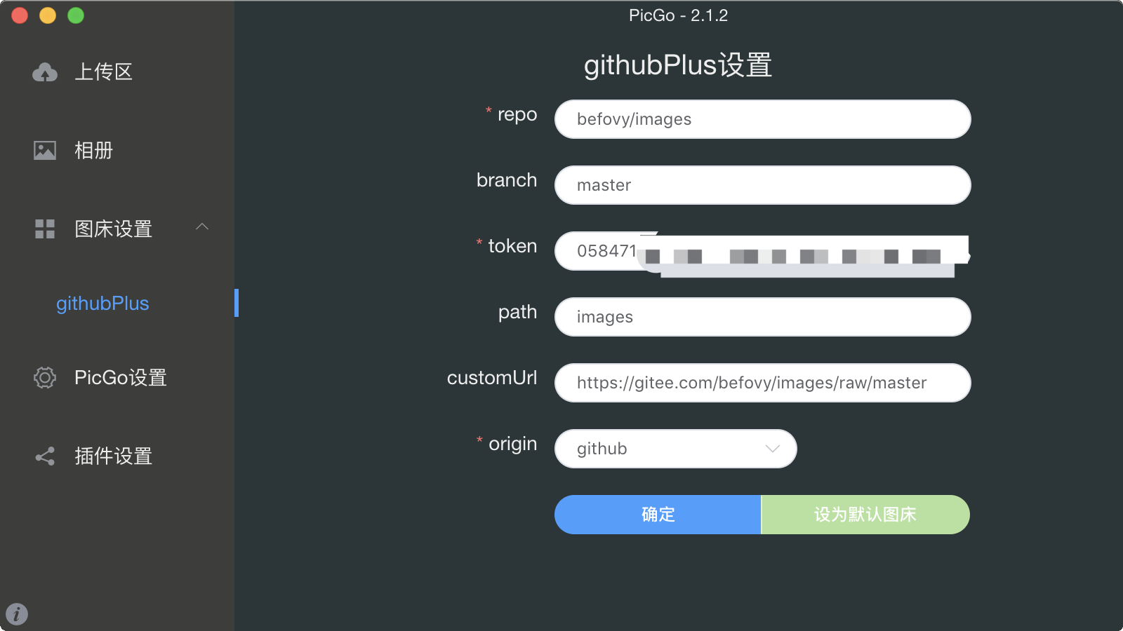 PicGo 设置如图, 我用了 githubPlus 插件,其实用默认的 github 图床功能就行。