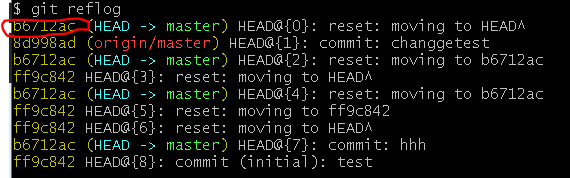 - 查看操作指令历史记录确定要回退的指令id:git reflog