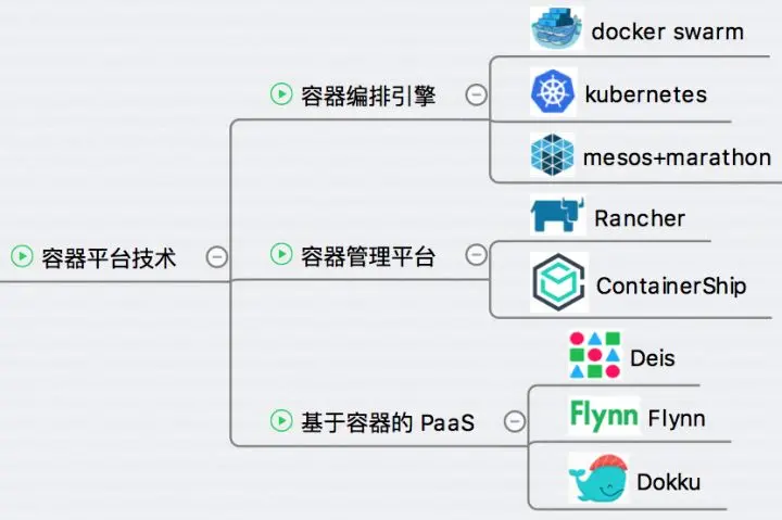 如下图所示,“容器平台技术”包括容器编排引擎、容器管理平台和基于容器的 PaaS。容器平台技术在生态环境中占据着举足轻重的位置,对于容器是否能够落地,是否能应用于生产至关重要。