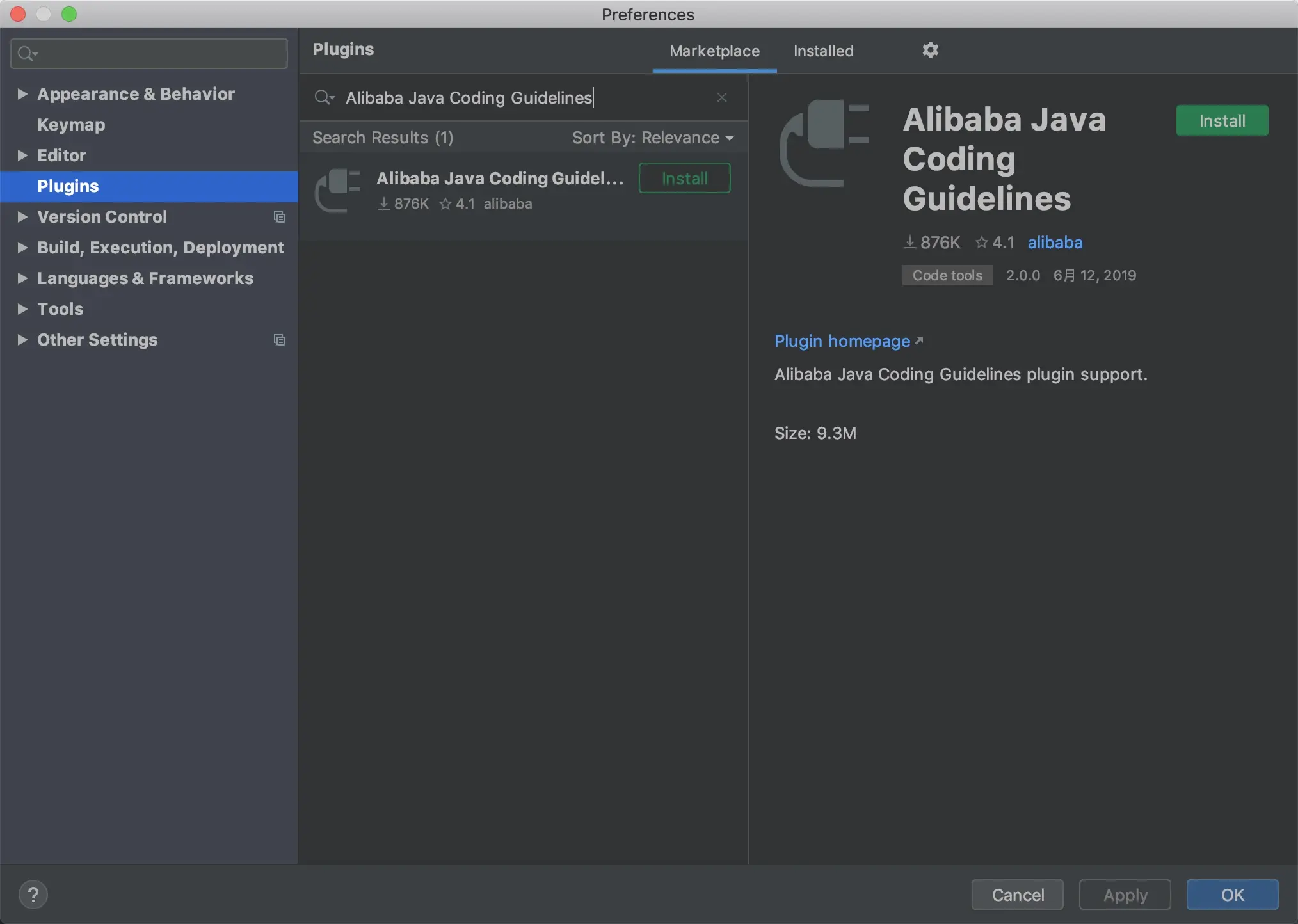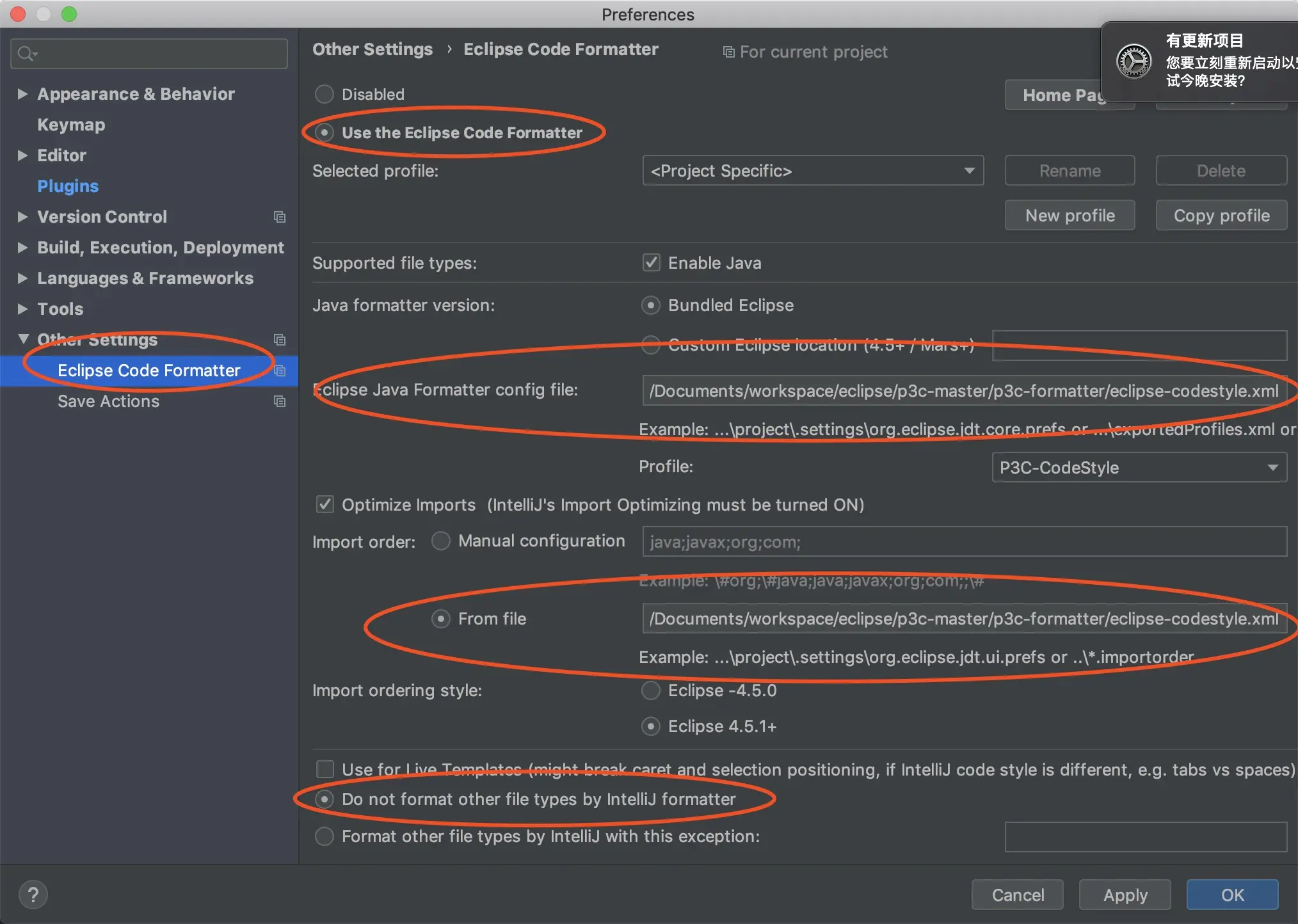 - Alibaba Java Coding Guidelines 安装示例图(Eclipse Code Formatter 同理)