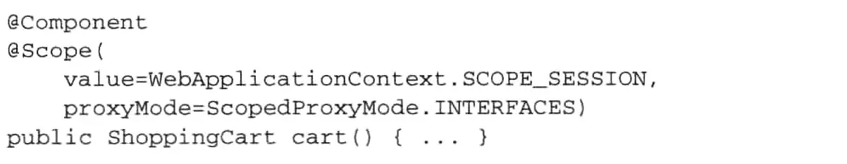 Spring Bean的作用域 拉拉穆里 2019-11-24 279 阅读1分钟 在默认情况下,Spring上下文中所有bean都是以单例形式创建的,也就是说无论给定的bean被注入到其他bean多少次,每次所注入的都是同一个实例。 大多数情况,单例bean是很理想的方案,但是有些时候要使用的类是易变的,它们会保持一定状态,因此重用是不安全的。 Spring定义了多种作用域,可以基于这些作用域创建bean,它包括: 单例:默认实现方式。其他作用域类型可以添加@Scope注解指定 在配置类中使用@Bean注解,或在类上添加@Component注解等 原型: 会话和请求作用域: